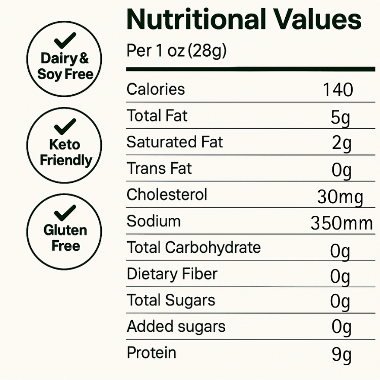High in protein, low in carbs, and free from additives.